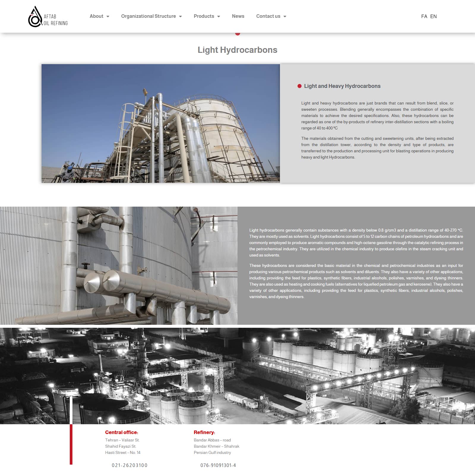 آفتاباَر یک پالایشگاه خصوصی است که در زمینه تولید و صادرات مشتقات نفتی فعالیت میکند. این شرکت با استفاده از فناوریهای پیشرفته، فرآوردههای نفتی با کیفیت بالا را برای تأمین نیازهای داخلی و خارجی تولید مینماید. پالایشگاه آفتاباَر توانسته است نقش مهمی در صنعت نفت و گاز ایران ایفا کند و به تأمین انرژی و سوخت در بخشهای مختلف کمک نماید. این شرکت با رعایت استانداردهای جهانی، محصولات خود را به بازارهای بینالمللی نیز صادر میکند.